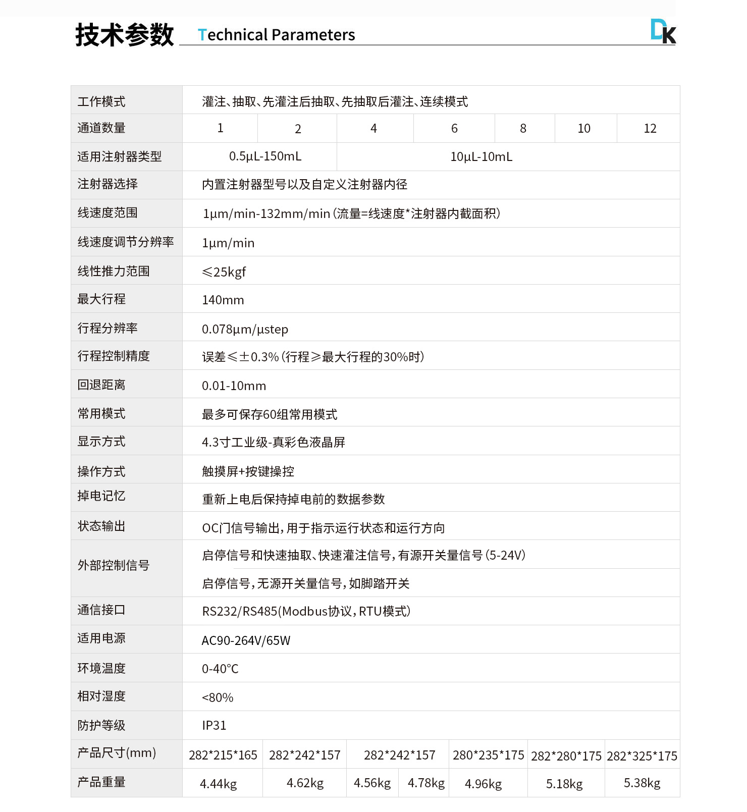 線速度范圍:1μm/min-132mm/min(流量=線速度*注射器內(nèi)截面積)