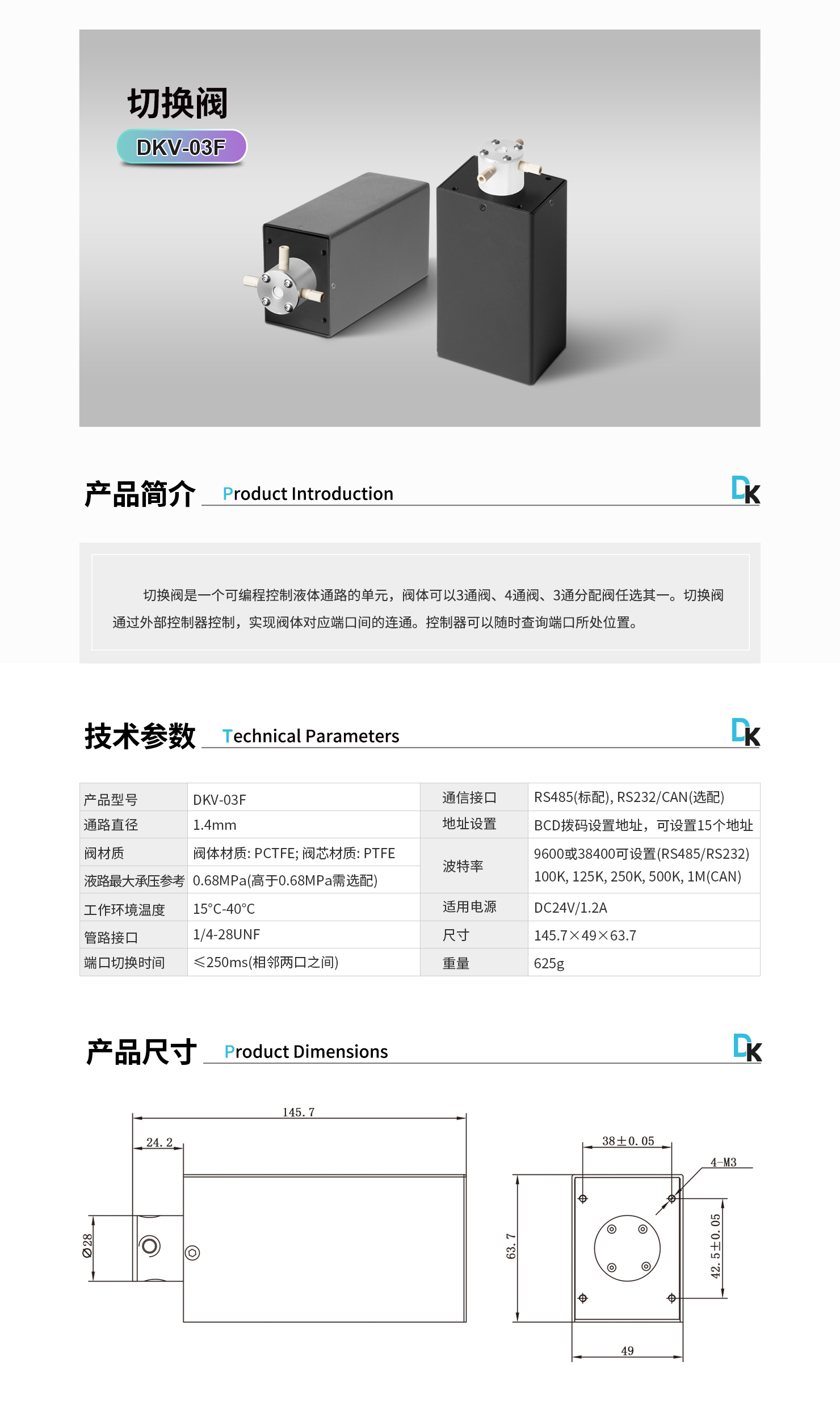 切換閥是一個可編程控制液體通路的單元,閥體可以3通閥、4通閥、3通分配閥任選其一。切換閥通過外部控制器控制,實現(xiàn)閥體對應(yīng)端口間的連通??刂破骺梢噪S時查詢端口所處位置。