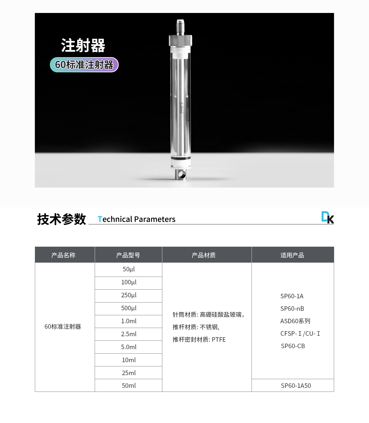 注射器型號(hào):50μL、100μL、250μL、500μL、1.0mL、2.5mL、5.0mL、10mL、25mL
