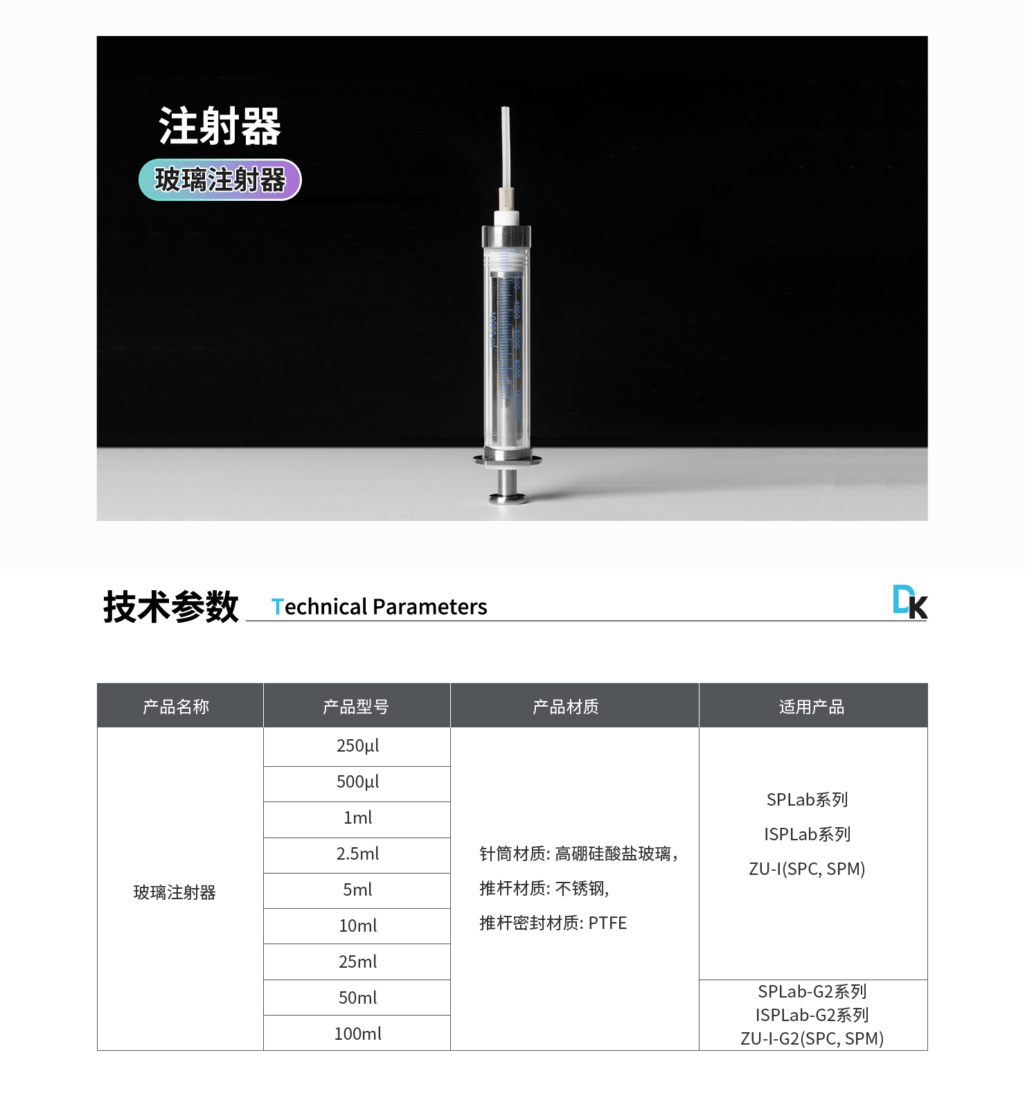 注射器型號(hào):250μL、500μL、1mL、2.5mL、5mL、10mL、25mL、50mL、100mL