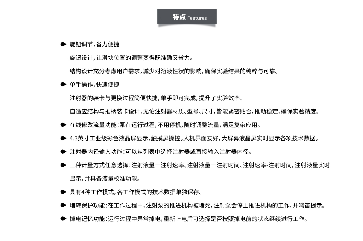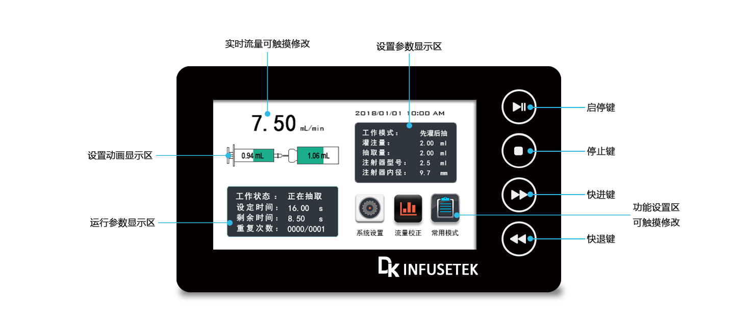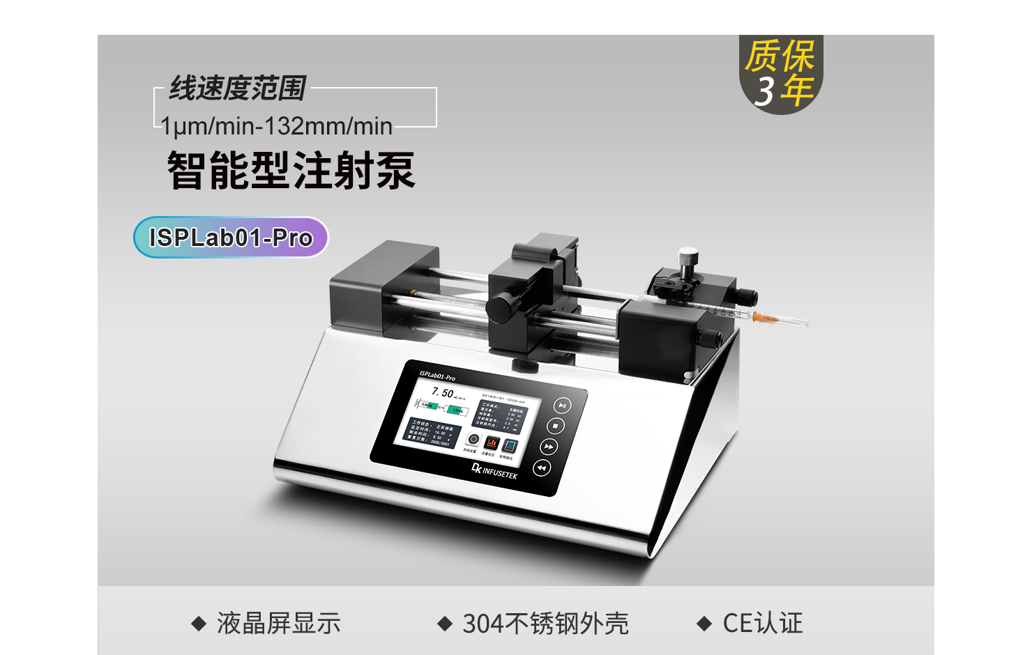 線速度范圍:1μm/min-132mm/min(流量=線速度*注射器內(nèi)截面積)